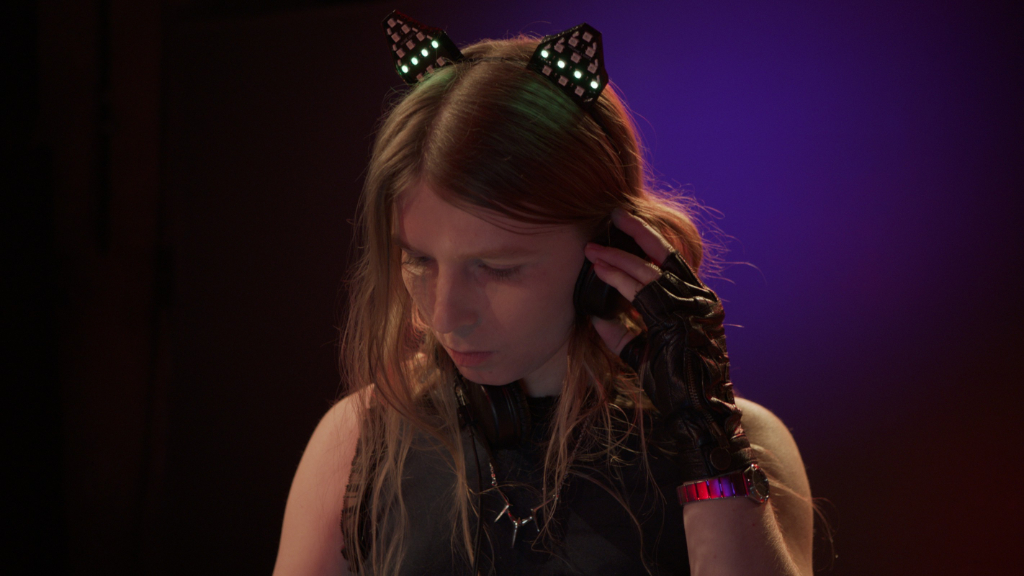 C’est tout naturellement au milieu de cette forêt d’accessoires qu’apparaît Chelsea Manning à la place du dj dans un club berlinois déserté. All The Things She Said (2025) est une installation vidéo en deux parties réalisée avec la lanceuse d’alerte et activiste états-unienne et dans laquelle elle exprime son amour pour la musique de club qui lui a servi de stratégie de survie. Comme dans l’installation Moving Backwards (2019) qui rendait hommage aux combattantes du Rojava, les artistes s’inspirent de la résistance politique pour offrir une vision d’espoir dans un moment particulièrement désespéré. IA